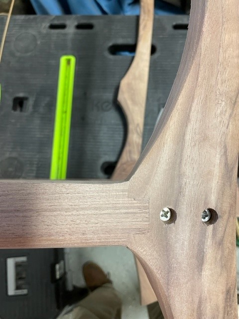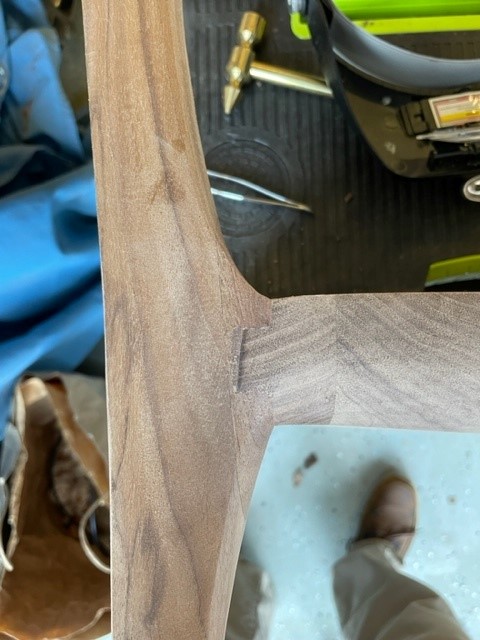 Building A Sam Maloof Rocking Chair Part VWith the cold weather we have had the past month or so, I have not been out in the shop much. Plus I also had a couple other projects going on such as the scrap wood challenge. But I did do some more shaping and sanding on the seat and legs to get ready for the final glue up of the seat and legs. So after a little bit more refining during the past month or so, I found some warm days when the temperatures got into the 50’s where I could do a glue up. Yes, the front and rear legs have been glued and screwed into place. So you can actually sit in it now. I used Titebond III for this part of the glue up and as you may know, the glue and pieces of wood need to be above 40 degrees. We didn’t have a lot of weekends in the upper 40s, so when I saw the potential for 50 or better temps one weekend, I took all the parts and the glue inside for a few days to at least get to room temperature and then took them back to the garage for the actual glue up. So I guess that is a milestone accomplished as there is no going back now. Unfortunately, with all the putting together and taking apart and moving pieces around here and there I got some damage at a couple of places. Nothing any woodworker would like to talk about, but as I am sure all of you have had a project where a little chip here or there happened. So I thought I would share a couple of the repairs I had to make as part of the final assembly of the legs and seat. Below are a couple pictures showing where a small chip of wood was knocked off of one of the tenons. The one on the left is the side of the rear seat on the right side. The one on the right is the back of the seat where that tenon joins with the rear leg. So to fix these I had to find some scrap that had similar color and grain to the missing pieces. The other problem is that these two repairs are going in different directions. The first photo, the grain is going horizontal to the seat. The second repair, the grain is actually going into the seat (back to front), so you are dealing with end grain. Obviously if you notice the damage when it happens and can save that chip that came off, it will make your life and the repair a lot easier. But if you can’t you’ll need to use a piece of scrap. So you will want to save whatever scraps you can until your project is complete. Particularly if you are dealing with wood that has variations in color and figure so you have more options. Anyway, below are two pictures showing the repairs for each. I spent the last weekend or so cleaning up the glue squeeze out and getting that final blending of the seat to the legs. Next will be more sanding of the seat and leg joints. I want to get these areas sanded to at least 220 before I add the arms as it is a lot easier to sand and move around without the arms attached. So hopefully for the next issue, I’ll have the arms attached and possibly the head rest and spindles attached and sculpted. Scott Paris |