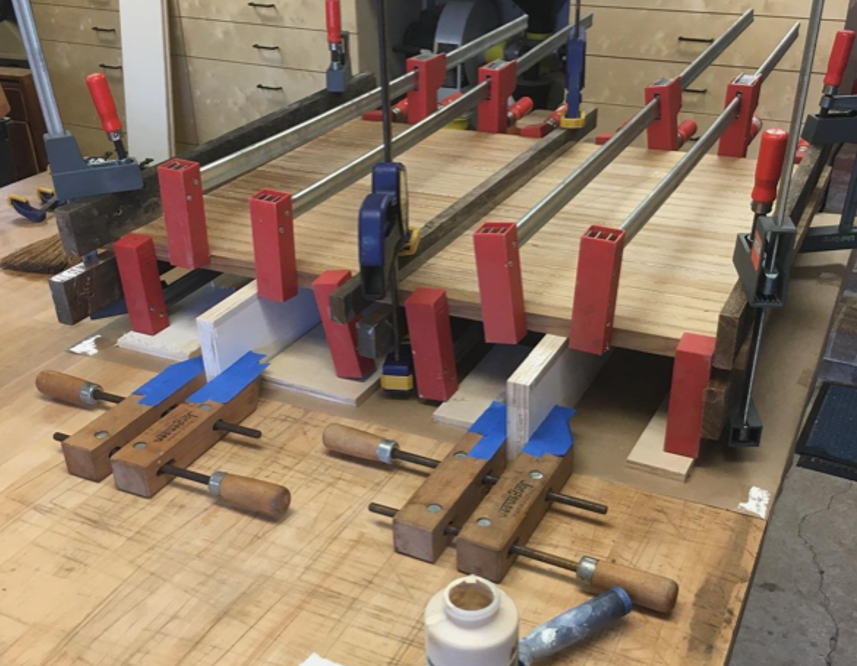 Benchtop Talk: Challenges For WoodworkersTWWWG members met for an informal benchtop discussion on April 10, 2023. The only stated objective for the meeting was an opportunity for members to present work they’ve performed or challenges they are experiencing. Not all discussions were captured, but below is a summary of some of the bigger topics. Gary Stephens showed a thick block that had been glued up from contrasting colors of scrap wood, which he intended to cut into a gradual curve as part of a knife block. He asked for suggestions for cutting such a thick piece of wood with a gradual curve, which was too thick to cut in his bandsaw. Consensus was that it would be easiest to do on a bandsaw that has an extension block for resawing. Alternatively, it could have been cut as two pieces before gluing up. The cut was performed later in the gathering on the saw in the classroom.