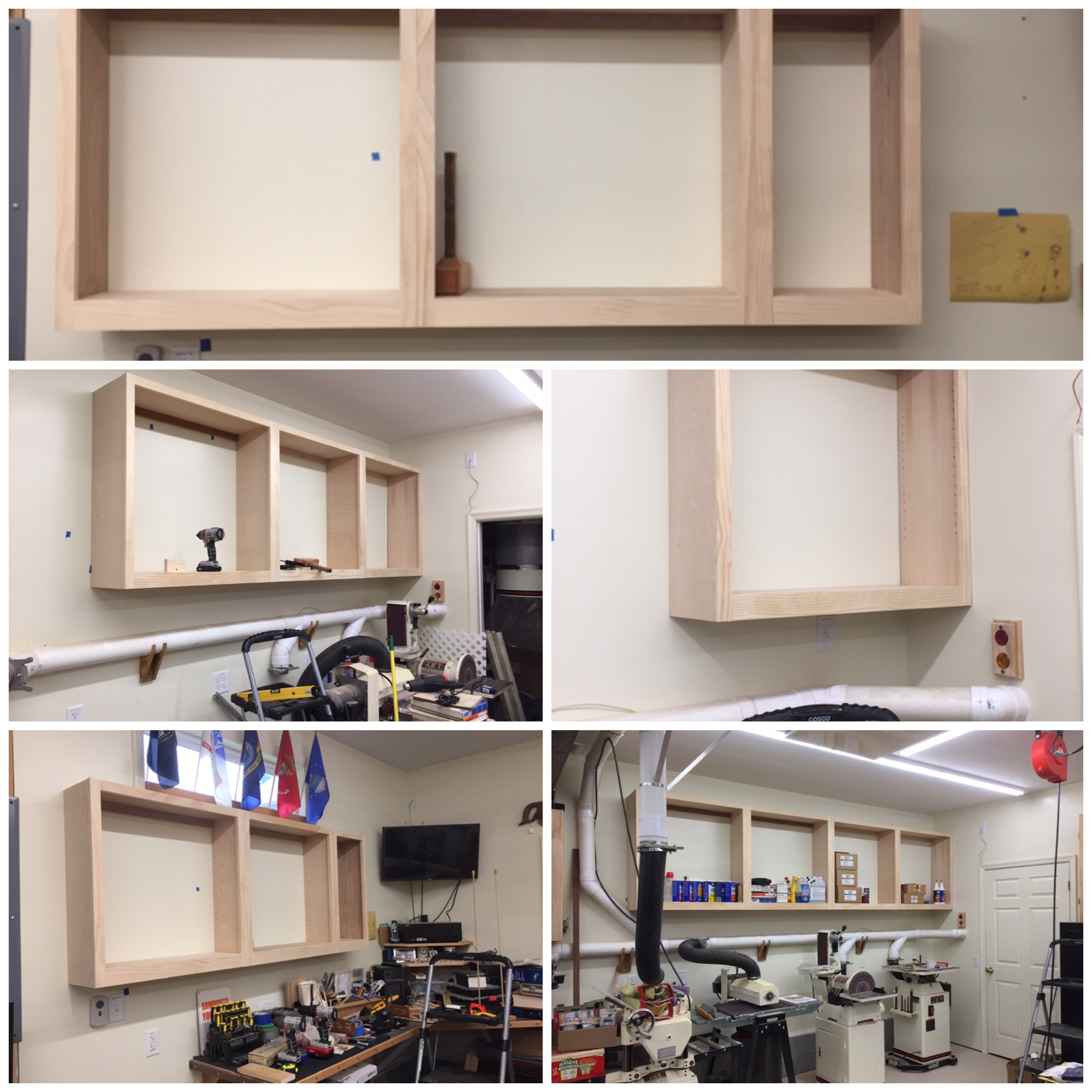 When the construction for my dream wood shop was complete, the budget got tight as I started to outfit the shop with things like dust collection piping, air conditioning, etc. Some shop projects on my priority list had to be placed on hold. As time went on, I knew that my much needed shop cabinets had to jump to the top of the priority list because items that should be stored in cabinets, were stacked on the floor and on much needed horizontal work spaces. Early on, I tinkered with the “make” or “buy” decision. I spent a considerable amount of time researching on-line for the cheapest cabinets that would also meet my needs. I was not thrilled by the construction nor the material used and the less expensive cabinets were still too expensive. So, I started pricing out material to build my own cabinets. Occasionally I would stop at thrift stores to search for bargains. One day, I discovered a large bag of 33 used European style cabinet hinges for only $4.95. This was a great find because European cabinet hardware can be expensive. In previous visits to thrift stores I had managed to score bundles of used cabinet hardware (pulls and knobs), at bargain prices. All I needed now was the wood to move forward with the cabinet build. Last year at one of our Tidewater Woodworkers Guild meetings Andy Steinberg (one of our past presidents) asked if anyone was interested in purchasing plywood at a reasonable price. I couldn’t raise my hand fast enough. Thanks to Andy, myself and other guild members were able to get quality 3/4” thick plywood at a very reasonable price. Thank you Andy. Because the European hinges were face frame type hinges with a half inch overlay, the decision to build face frame style cabinets was an easy one. For simplicity, I decided to build shaker style doors. I used graph paper to help me figure out a cut list and to help me get the most out of each plywood sheet in order to minimize waste. After slicing up the plywood for 3 of the cabinets, I did a dry fit. I used pocket hole joinery and glue to construct the boxes. Before attaching the face frames I used a Kreg jig to drill holes for the shelf pins. As you can see in this picture, there are no backs to these cabinet carcasses. That’s because I’m cheap. That required special attention to keeping the boxes absolutely square during the assembly and glue up process. The face frames helped with keeping them square. It worked out perfectly. I mounted the cabinets to wall studs using a traditional ledger strip affixed to the inside top of each cabinet. Each cabinet is also screwed to the adjoining one through the edge of the face frame. Now on to the doors. Shaker style doors use mortise and tenon joinery. The panels are usually simple. I like the idea that some woodworkers have used white board material for their cabinet door panels. This allows you to use dry erase markers so you can write on the cabinets. So, I decided to use whiteboard panels on a few of the doors. For other cabinets, I used hardboard for the door panels. I saved a lot of money doing these myself and I like how they turned out. More importantly I was able to make them to suit my needs and specifications. I still have many more to build. I just have to decide what finish to apply. Karl Bogot has also been busy pulling lumber out of the scrap pile and making some interesting projects. Project 20-16. This is another in my 'treasure from scrap from scrap series'. The original project, a laminated solid cherry kitchen counter, yielded a large cutout for the sink. That cutout was resized to become a large cutting board. Too long, we cut off one end, leaving a 4 inch piece of laminated cherry some 18 inches long. I took that one, cut it into sections and glued it up into a 4 inch cube. Then, I sliced off 7/16 inch pieces, sanded, and finished them to a set of six 4-inch coasters. Waste not. Want not. (Oh, I have a 4x4x1/4" piece left. Any ideas?) Project 20-12 is a cutting board made from American Sycamore with Maple highlights and trimmed with thin strips of cherry and walnut. This wood had been hanging around the dark reaches of my woodpile. The gorgeous grain is surprisingly tight and the wood is heavy and dense. It measures 16 x 12 x 1.25. I'm going to put it up on Etsy for $100 + $15 shipping. Local friends get free delivery (with proper social distancing.) I have another Sycamore board in process, along with two made from Cherry. Think Christmas gifts, wedding presents and house warming.