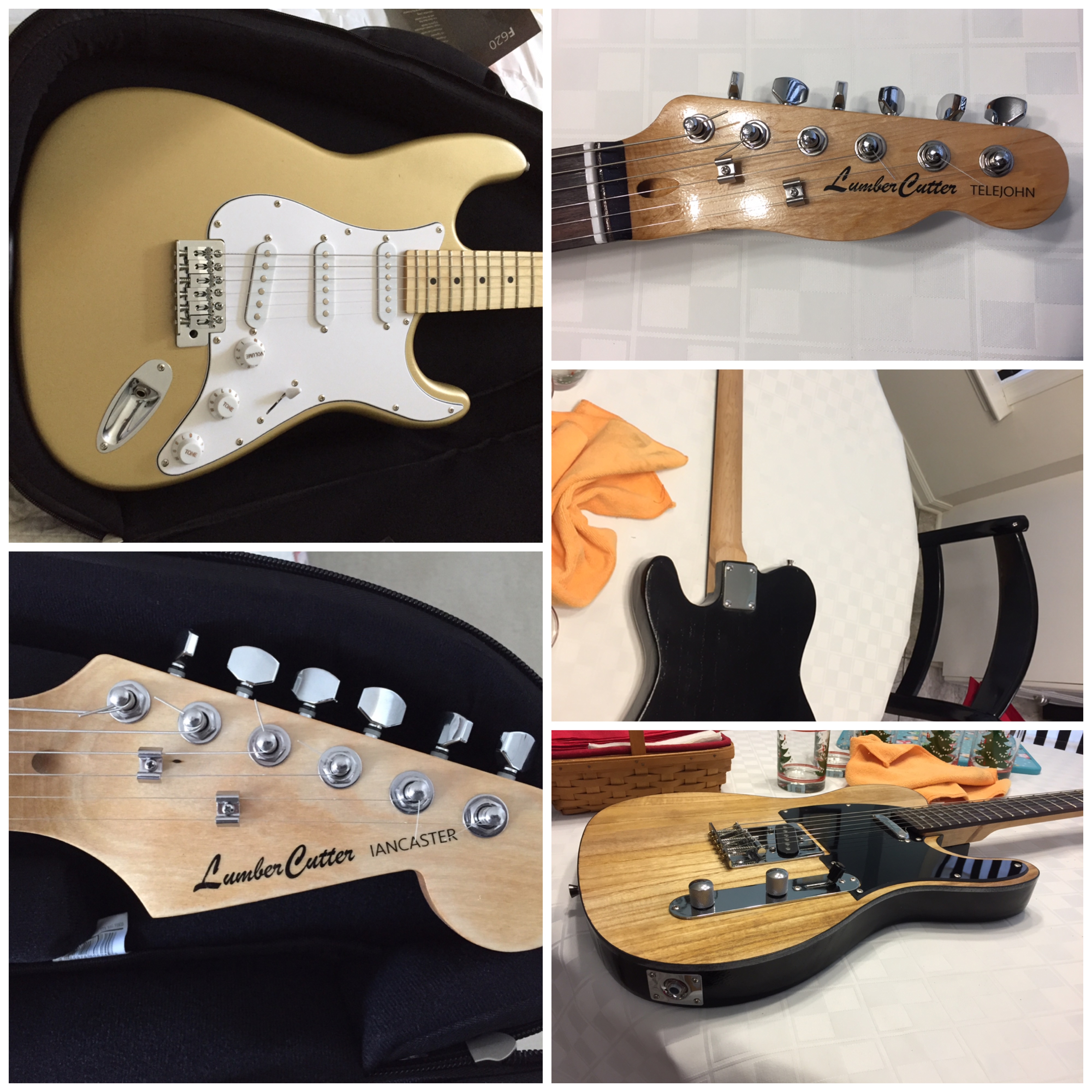 Guild member Don Newsome has also been busy in his shop with two different projects, guitar building and shop and storage cabinets. One of my woodworking goals is to scratch build guitars (both electric and acoustic). This requires special luthier tools as well as understanding the techniques and processes used to produce a quality instrument. One of my woodworking goals is to scratch build guitars (both electric and acoustic). This requires special luthier tools as well as understanding the techniques and processes used to produce a quality instrument. The final step includes the proper setup of the instrument in order to satisfy the requirements of the musician who will play it. Guitar players are a unique group of musicians and no two players seem to agree on what gage strings are best, how high or low the string action should be, and what type of frets to use. To date, I have built 3 guitars from kits (one acoustic and two electric). These kits required much hand work to complete but the experience allowed me to gain some valuable luthier knowledge and experience. The above guitars are clones of two of the most popular electric guitars ever built (the Fender Stratocaster and Telecaster). I built these for my two grandsons. Note the decals I created for the headstock which has my LumberCutter logo as well as my grandson’s names mixed in with the guitar style name (IanCaster and TeleJohn). The acoustic guitar: This acoustic guitar was a real challenge. Built during a 3 day course at the Woodcraft store. The course was intense but very satisfying and this inspired me to want to build more. This guitar mimics a Martin style acoustic with maple back and sides with a sitka spruce sound board. Along my luthier journey I’ve also accomplished repairs to a couple of guitars in order to bring them back to a playable condition. Luthiers know that repairing guitars is a valuable way to improve your instrument building skills. I also have a background in electronics, this has been very helpful in also troubleshooting problems with electric guitar circuitry. Recently I had the opportunity to repair a 1966 Fender Coronado II Hollow Body acoustic/electric guitar. A guitar that is 56 years old. It was not a playable instrument because it had multiple issues both mechanically and electrically. Several years ago someone had decided that it would be a great idea to replace the original neck pickup with one from a Gibson brand guitar. In doing so, they took a saw to the body cavity at the neck to accept the wider Gibson pickup. The modification devalued this vintage guitar. The bridge was also rusted and one of the tuners was broken. Adding to the problem, the volume and tone controls were not responding properly when plugged into an amplifier. Getting to the electronics is tough on this type of body style so before I decided to go through the effort to take it apart, I wanted to inspect all the wiring connections first. This required a peek inside the body. In my tool box of goodies is a bore scope which allows me to peek inside some really tight spaces. It has a camera with a dimmer controlled light and it connects to my iPhone so I can see what it sees and I can also take pictures. In peeking around inside the body cavity I discovered a broken ground wire on the sleeve of the input jack. The ground wire from the large gray wire is suppose to be soldered to the input jack. It had broken off due to a very sloppy solder job as the picture shows. I decided the only proper action for this guitar was to try and bring it back to its original 1966 glory by using genuine vintage parts. Fortunately I was able to snag several used 1966 Coronado parts from eBay; however, finding an original Fender neck pickup was not so easy but after several months someone finally posted one for bid and I scored. The bridge and tuner were easy to replace but mounting the neck pickup was a problem due to the body modification that had been accomplished. Here is the body after removing the pickups, controls, selector switch, and wiring harness. Note the butchered body at the neck. While I had it apart, I decided to clean and polish the body. I was amazed at how well the finish survived after all these years. After replacing parts and soldering the ground connection, it was time to test the electronics. The pickups and controls worked as designed. Success! After minor adjustments to the neck it was time to setup the guitar. Here are some pictures of the completed work: The best part is that the customer who owns this guitar is very grateful that it’s now a player and it’s value has been restored. Since I also play guitar, my next guitar will be a scratch built Fender Telecaster built to my specifications.