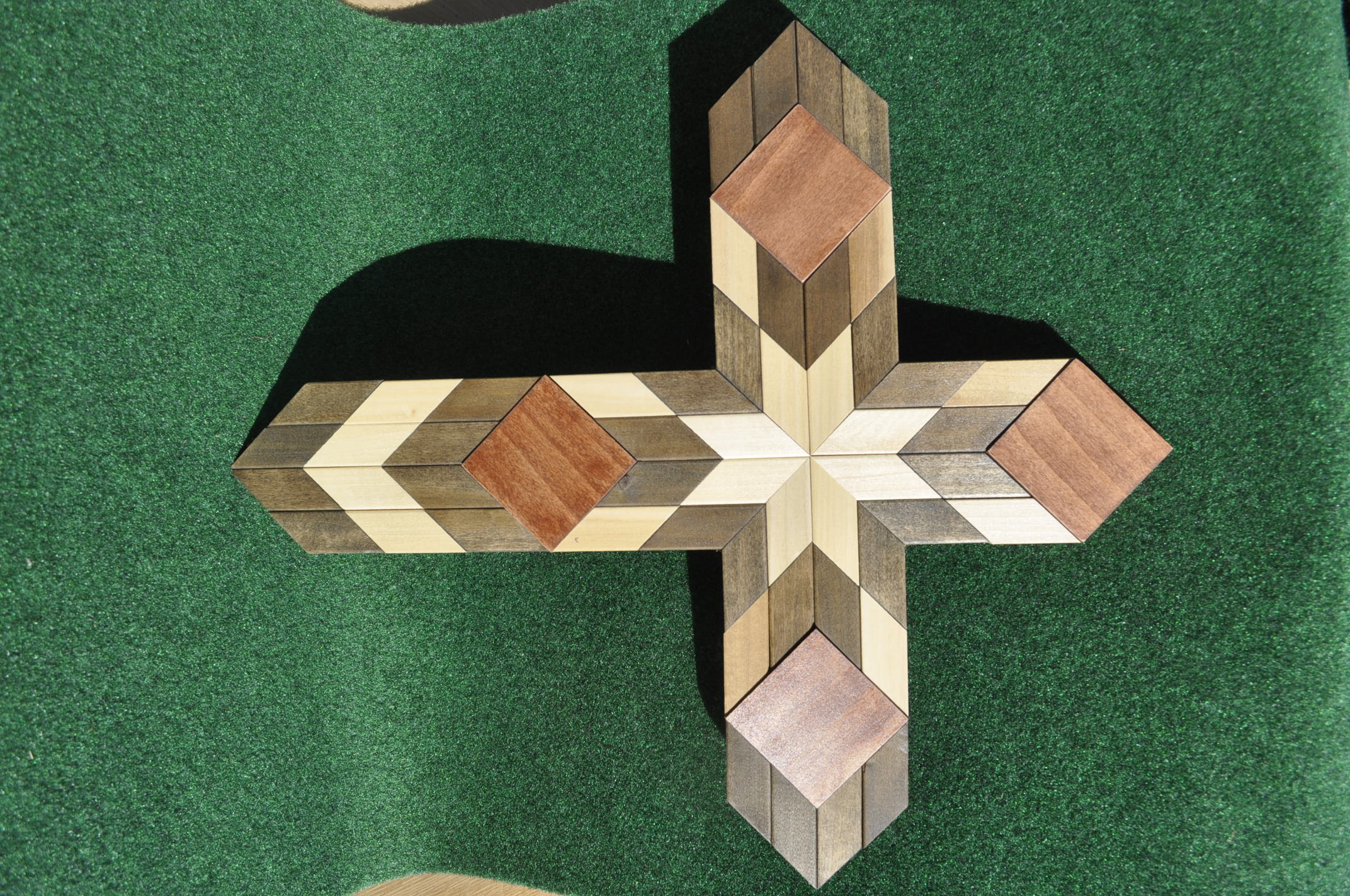 This curved centerpiece was featured in the Woodsmith Magazine in December of 2014. This particular issue of the magazine featured classic techniques for working with curved parts. My wife wanted me to make them for Christmas presents but there was not enough time and I did not have the wood. The curved centerpiece is made out of a solid 12/4’s quarter’s sawn white oak board. I worked with Chris Vickers of Somerton Ridge Hardwoods in Suffolk, VA to cut the log in his saw mill in 2015. The wood needed to dry for a year before going to the kiln to remove the final moisture. We purchased the Oak lumber sometime in the summer of 2016 with plans to make Christmas presents out of the Oak. Not sure what got in the way of not making them for Christmas in 2016 or 2017. In 2018 I was really sick with Sepsis and nothing happened. In 2019 I finally got around to cutting the lumber into the correct lengths and getting it surfaced planed. You cannot imagine how heavy these 7” or 8” wide planks being 3” plus thick and 8’ or 9’ long. They were all I could do to move them and they taxed the table saw because of their thickness and hardness. In 2020 the pandemic hit and I had lots of quality time on my hands to work in the shop and made the first prototype in the summer of 2020. If you look carefully at the center piece you might be able to see that I made it out 3 pieces and then glued them back together. The first cut on the band saw was to cut off about 3/8” on one side and then run these two parts back through the surface planner to get a flat surface. The 3/8” piece became the bottom piece. The second part of the project was to make a template to rout out the center part of the tray. I used this template to mark the area to be cut out and then a saber saw to do a rough cut of the center section. Using a flush trim router bit I was able to use the template to “clean” out the rough edges of the center section left by the saber saw. Lots of time and sawdust! The third part of the project was to make a template of the curved section and place it on the large section of wood with the center section removed and then to use the band saw to cut the curve on both sides using the band saw. This was a very slow and tedious job but it left me with the necessary parts to make the tray. I then glued the bottom piece back to the middle section and did some trim work on this to get the shape you see on the bottom of the tray. Finally I glued the top section to this new section for the final project and then spent hours sanding the rough surface. This was the most labor intensive project that I have ever attempted! I still have 6 more units awaiting sanding and gluing. Wooden Cross